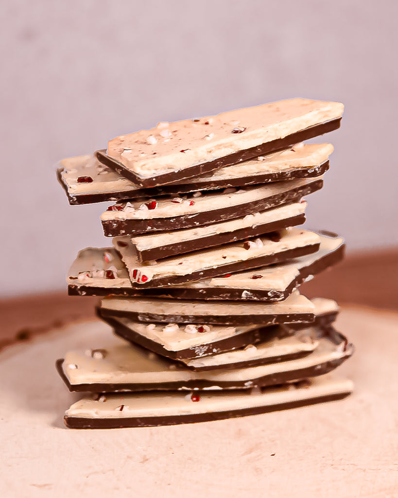 - Peppermint Bark - Rich Callebaut Belgian Dark & White Chocolate, all twirled up with the crisp, cool kick of peppermint.