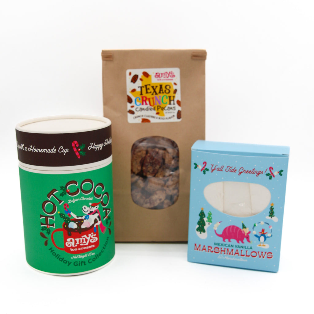 • A nut lover’s dream. This sweet set features Candied Pecans, Mexican Vanilla Marshmallows, and Belgian Hot Cocoa Mix, a trio that’s nutty, nice, and totally giftable.