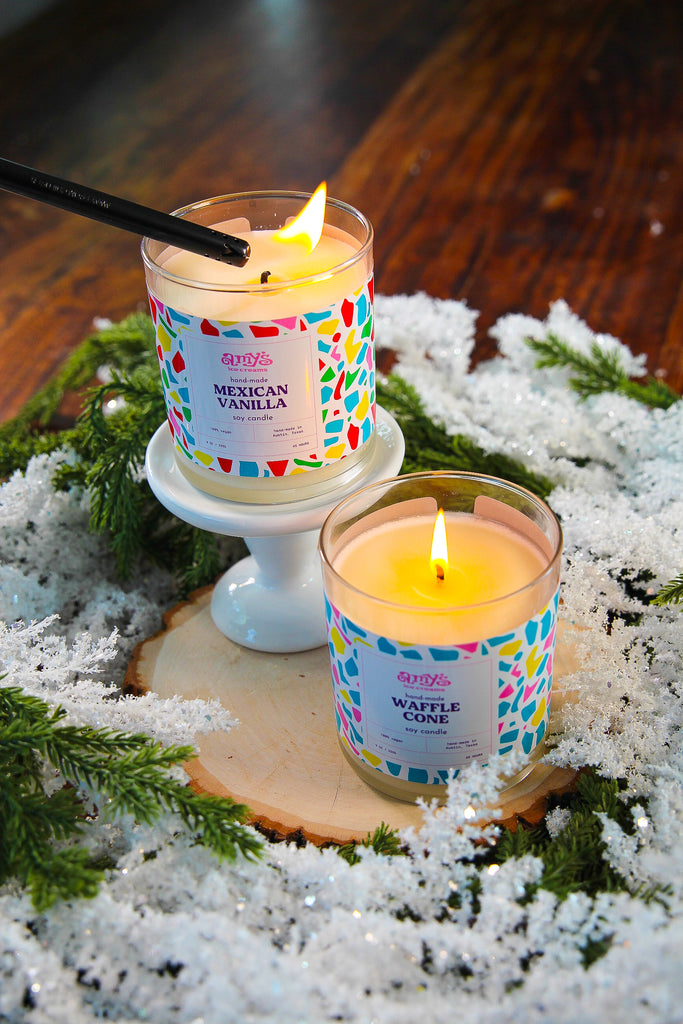 Bring the joy of Amy’s straight to your home with the warm, toasty aroma of freshly baked waffle cones. Hand-poured with 100% soy, love, and a little nostalgia. Smells like walking into an Amy’s, warm, sweet, and perfectly cozy.